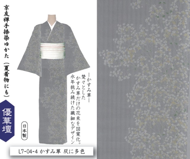 井登美 itomi 優華壇ゆかた 浴衣・夏着物 L7-04-4 かすみ草 灰に多色