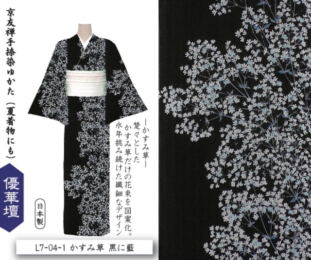 井登美 itomi 優華壇ゆかた 浴衣・夏着物 L7-04-1 かすみ草 黒に藍