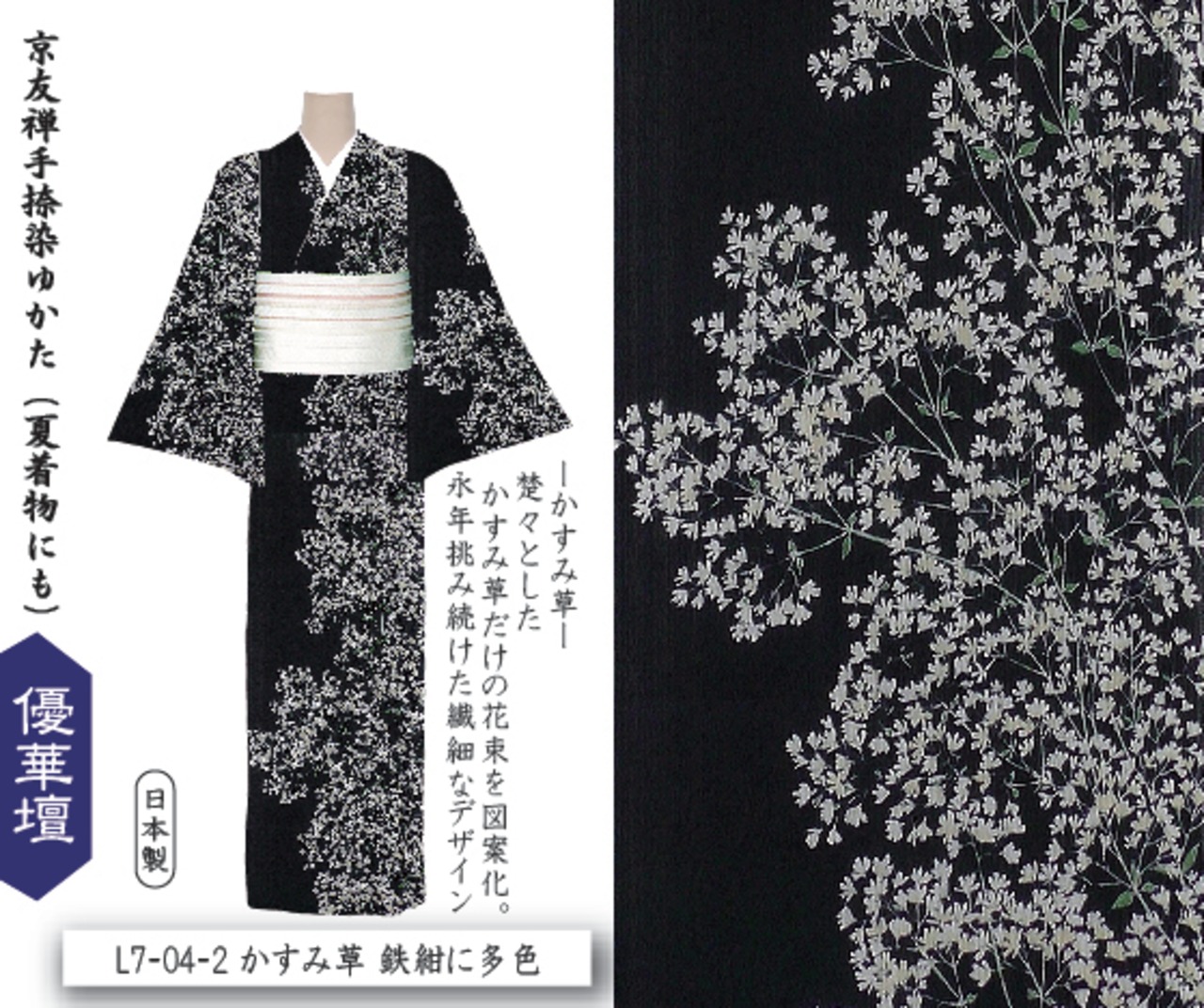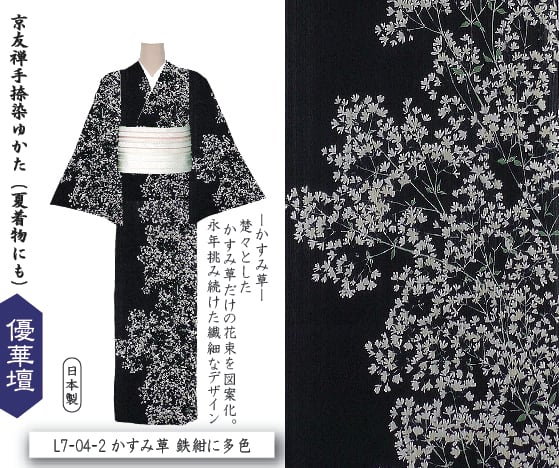 井登美 itomi 優華壇ゆかた 浴衣・夏着物 L7-04-2 かすみ草 鉄紺に多色