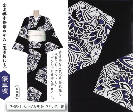 井登美 itomi 優華壇ゆかた 浴衣・夏着物 L7-05-1 切りばみ更紗 ひといろ 藍
