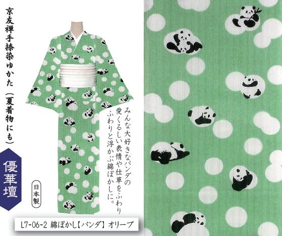 井登美 itomi 優華壇ゆかた 浴衣・夏着物 L7-06-2 綿ぼかし【パンダ】 オリーブ