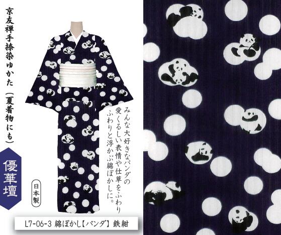 井登美 itomi 優華壇ゆかた 浴衣・夏着物 L7-06-3 綿ぼかし【パンダ】 鉄紺