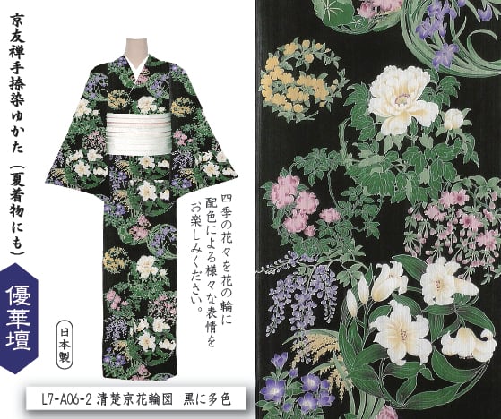 井登美 itomi 優華壇ゆかた 浴衣・夏着物 L7-A06-2 清楚京花輪図 黒に多色