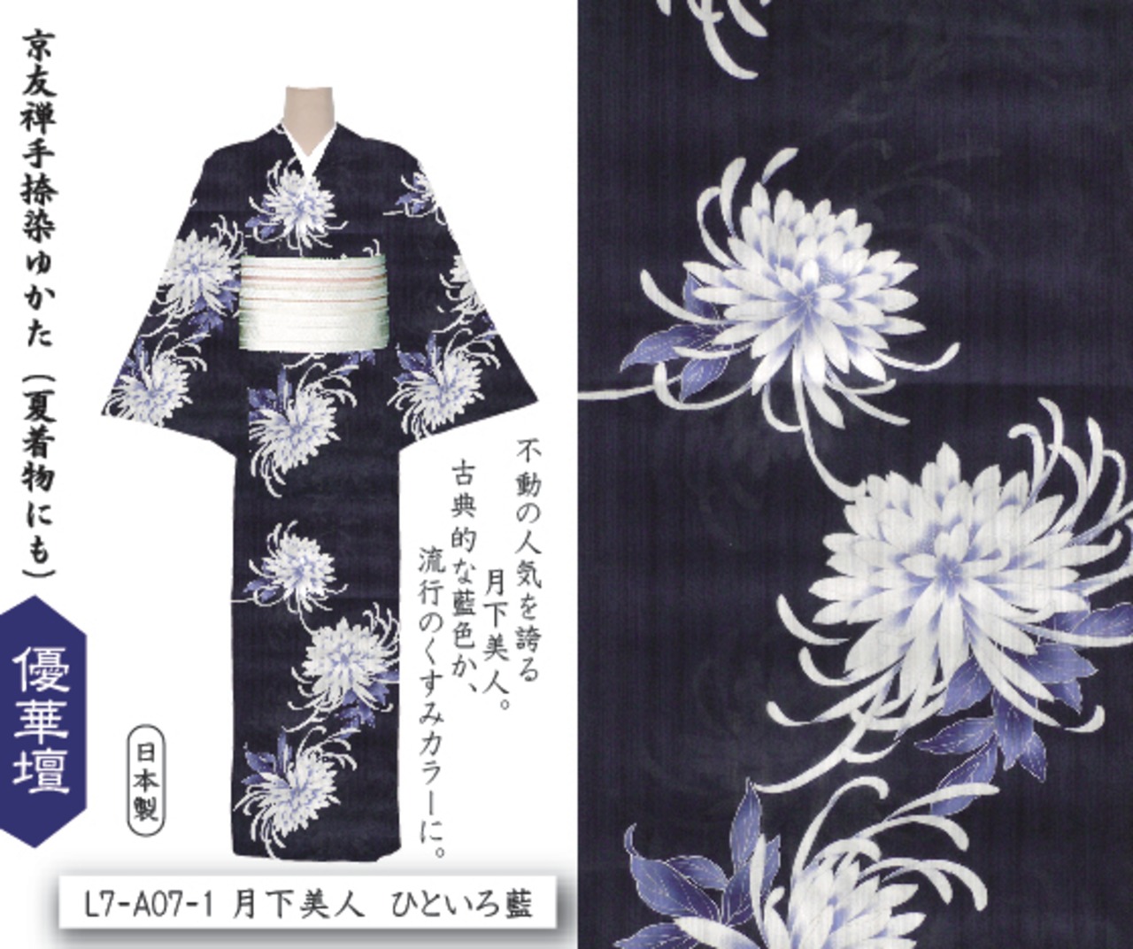 井登美 itomi 優華壇ゆかた 浴衣・夏着物 L7-A07-1 月下美人 ひといろ藍
