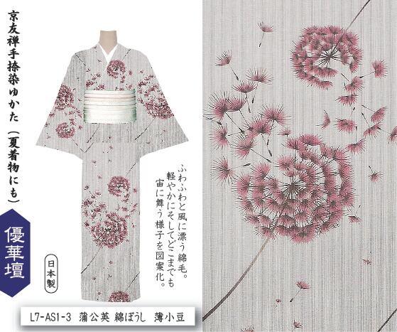 井登美 itomi 優華壇ゆかた 浴衣・夏着物 L7-AS1-3 蒲公英 綿ぼうし 薄小豆