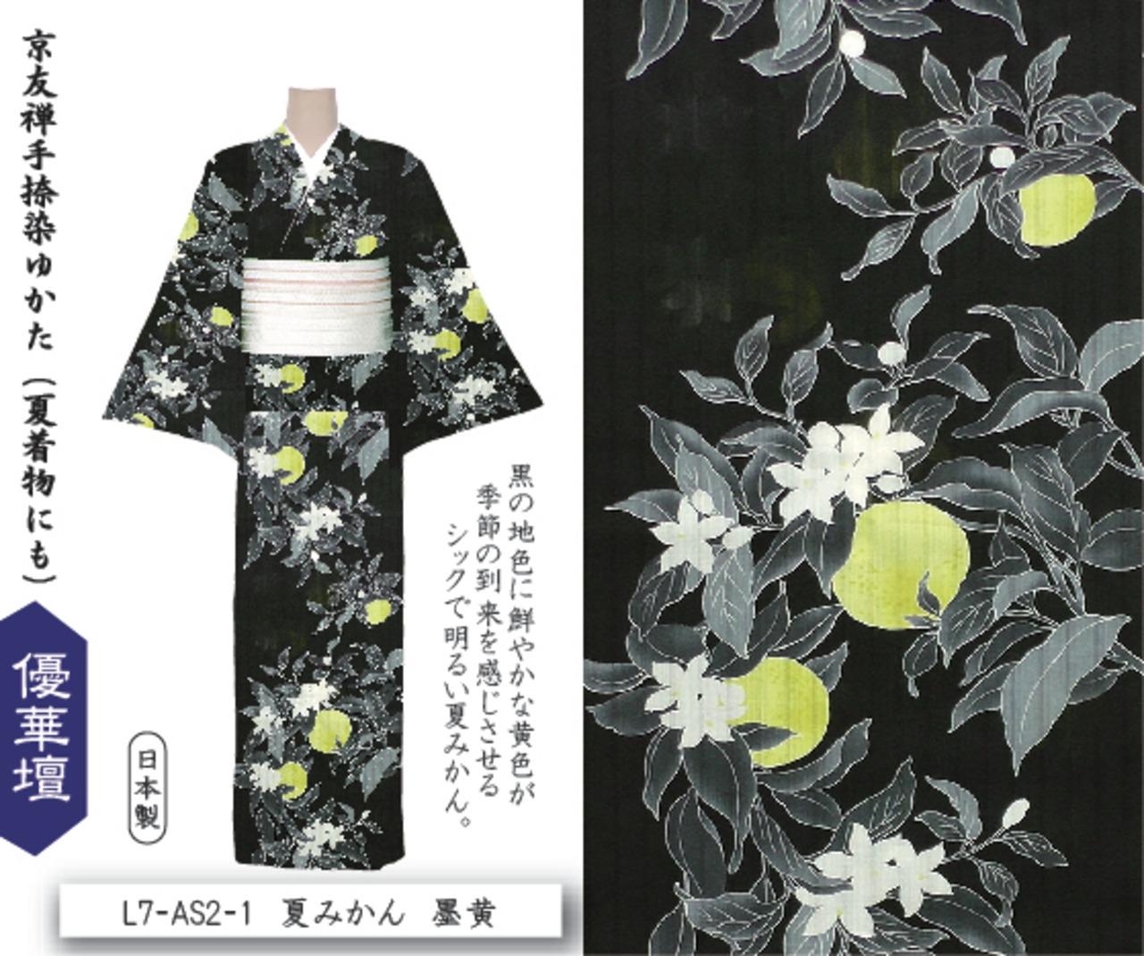 井登美 itomi 優華壇ゆかた 浴衣・夏着物 L7-AS2-1 夏みかん 墨黄