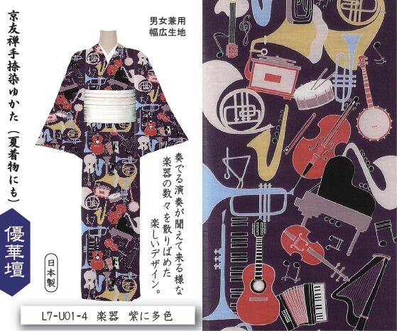 【広幅生地】井登美 itomi 優華壇ゆかた 浴衣・夏着物 L7-U01-4 楽器 紫に多色