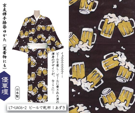 【広幅生地】井登美 itomi 優華壇ゆかた 浴衣・夏着物 L7-UA06-2 ビールで乾杯!あずき