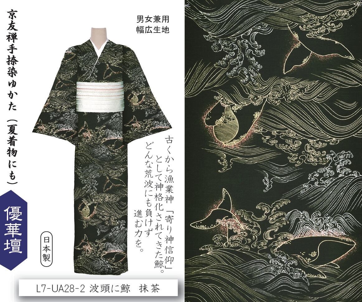 【広幅生地】井登美 itomi 優華壇ゆかた 浴衣・夏着物 L7-UA28-2 波頭に鯨 抹茶