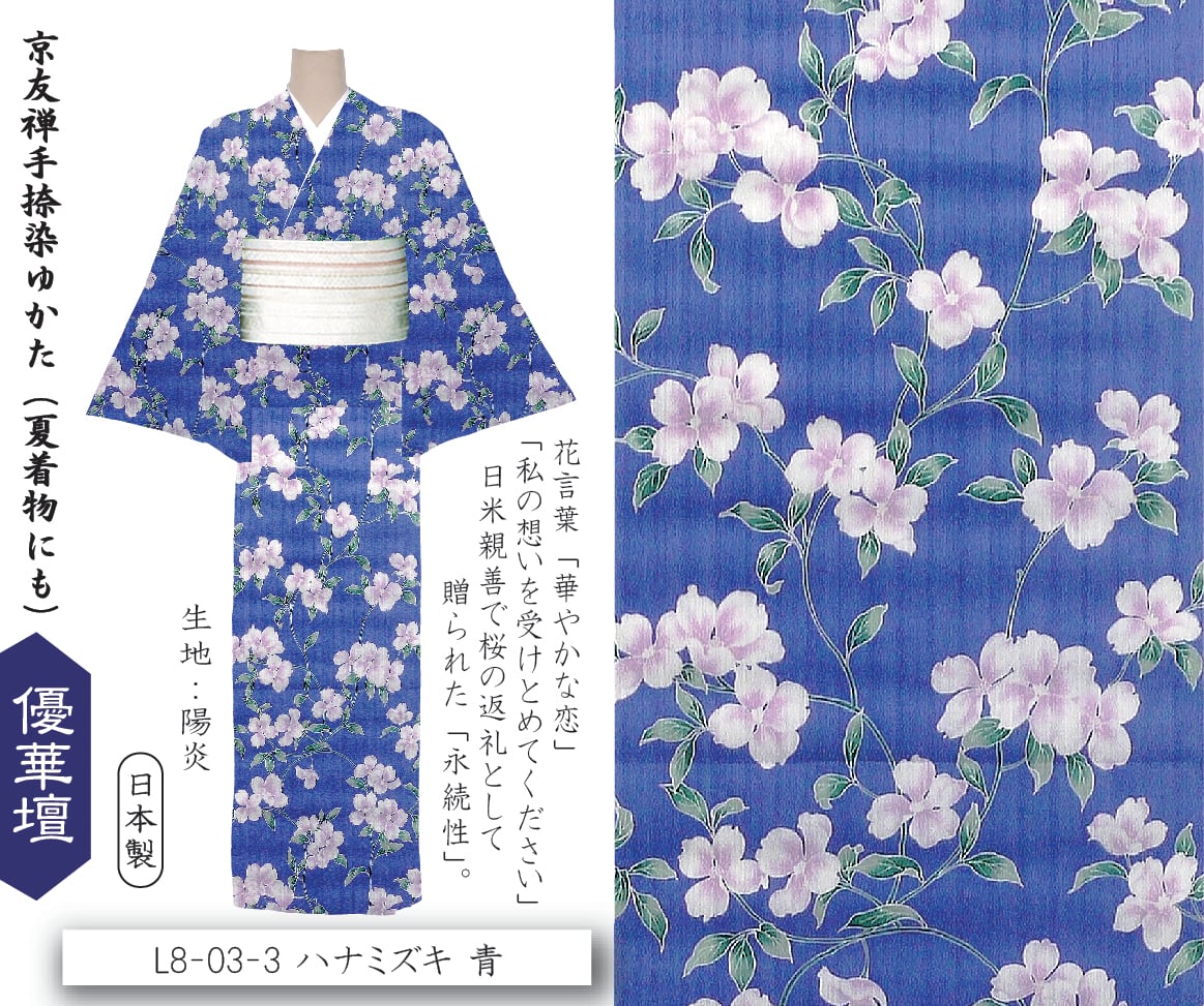 L8-03-3 ハナミズキ 青 井登美 itomi 優華壇ゆかた 浴衣・夏着物