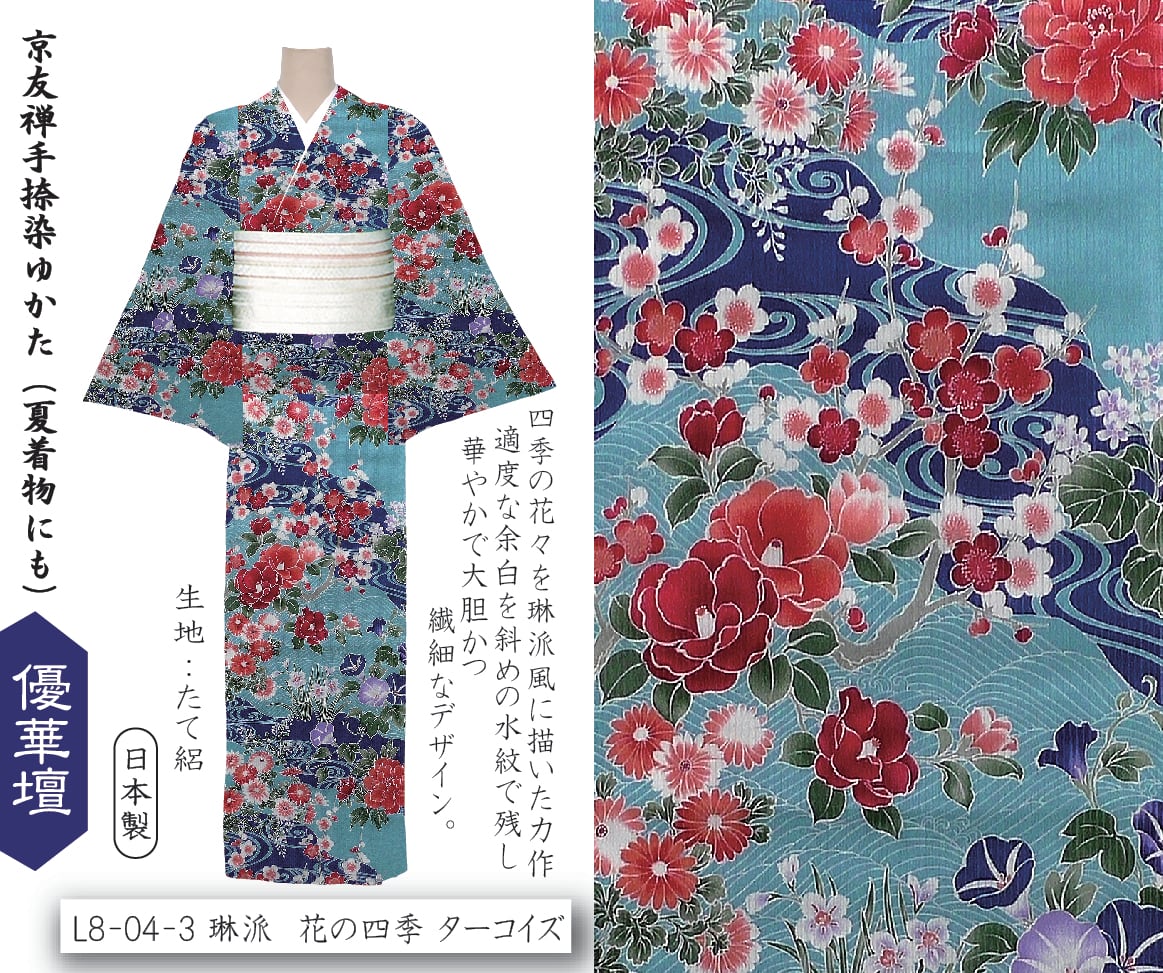 L8-04-3 琳派 花の四季 ターコイズ 井登美 itomi 優華壇ゆかた 浴衣・夏着物
